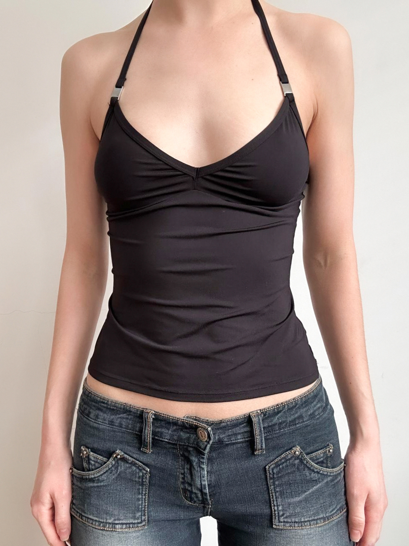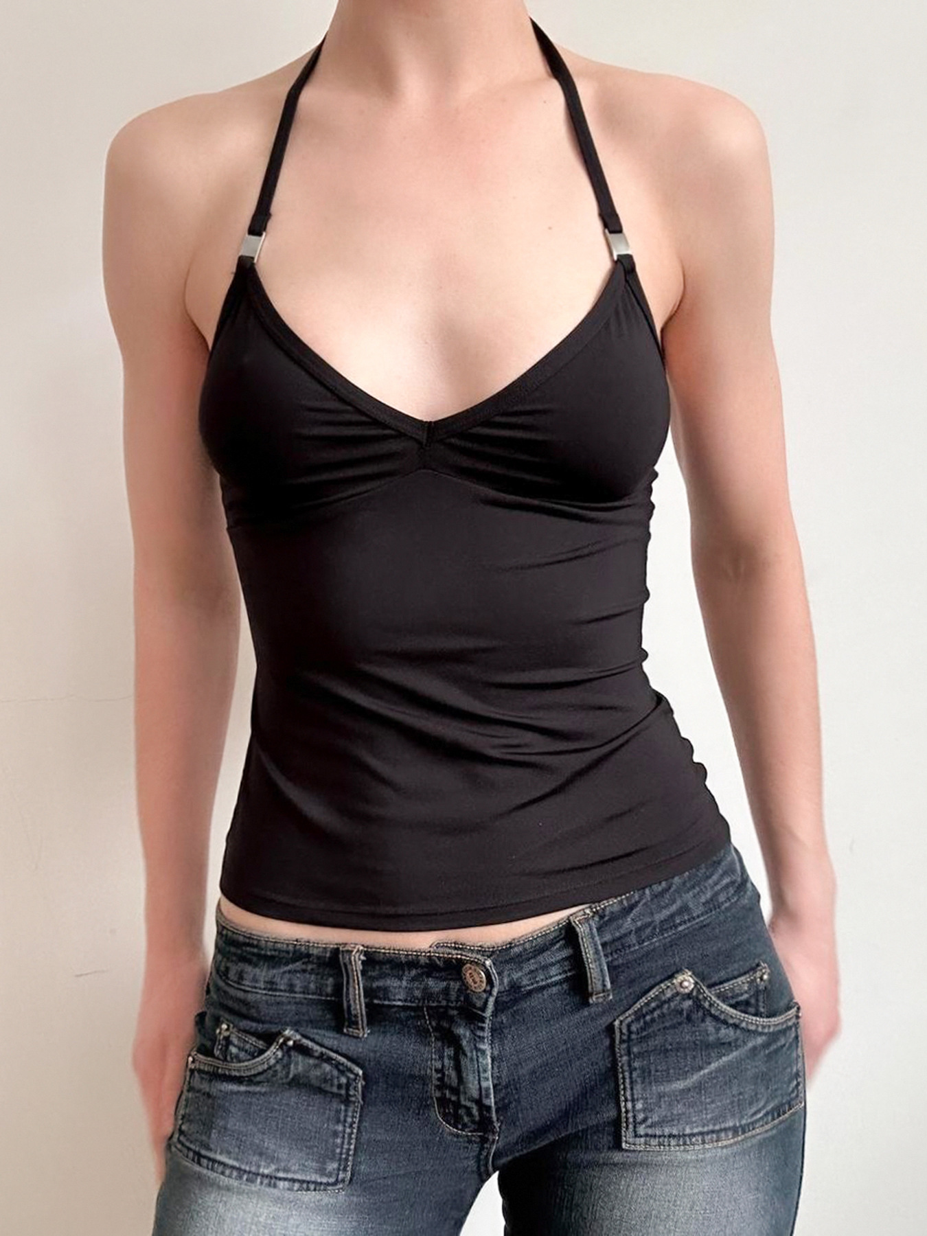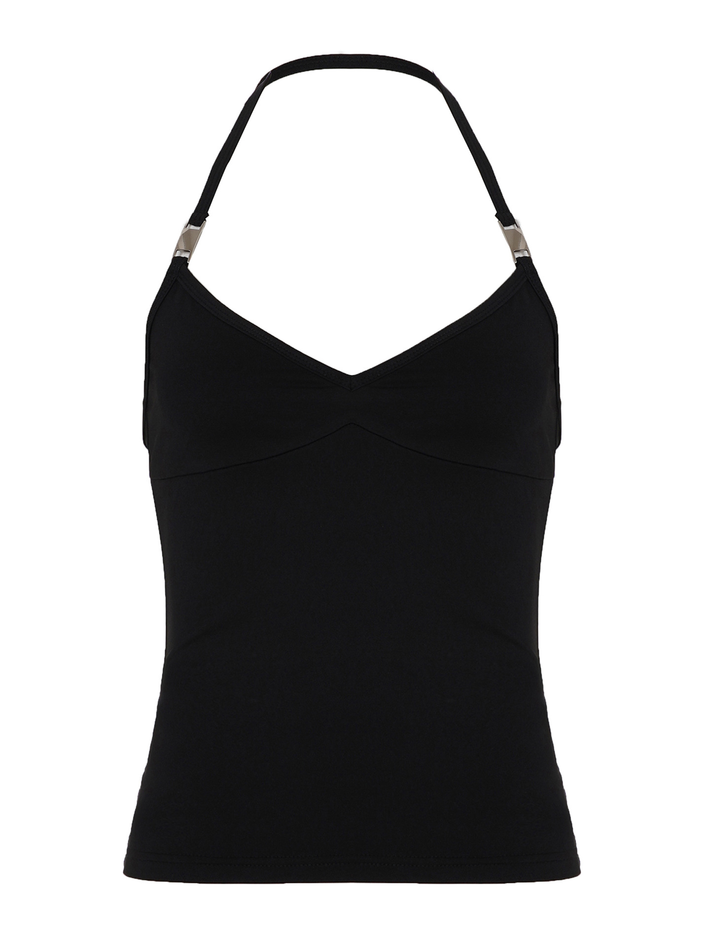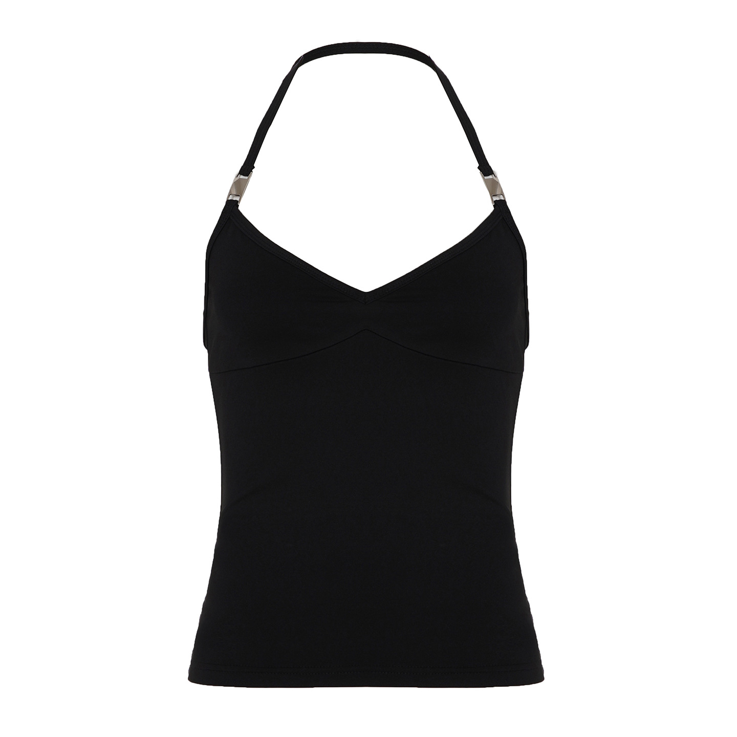 Simple Wind Metal Decoration Hanging Neck Small Vest Hottie Slim Elastic New Blouse Tide HZ1220