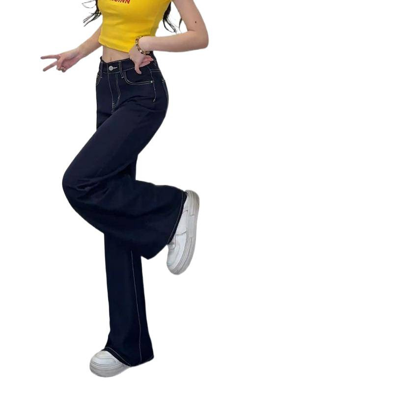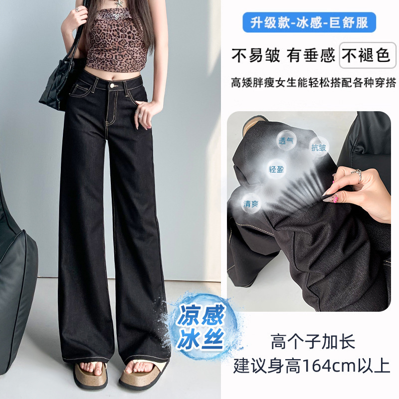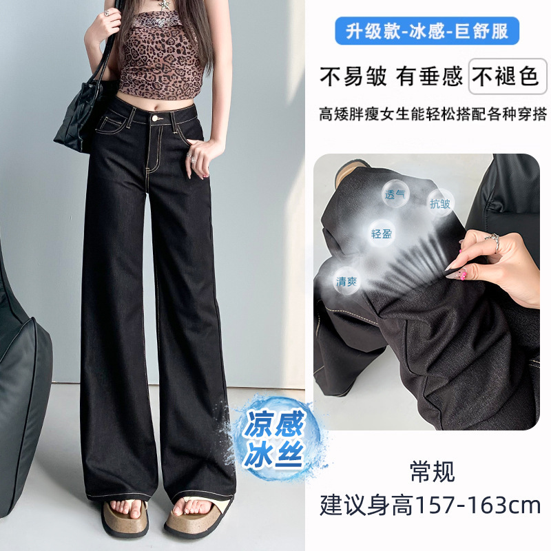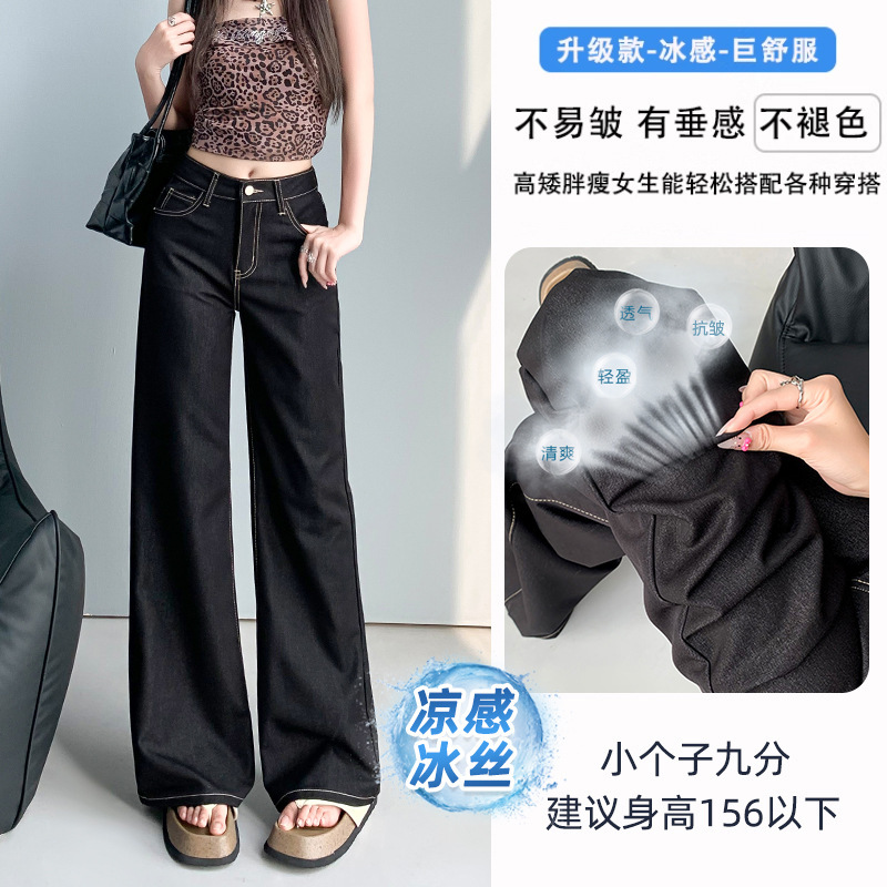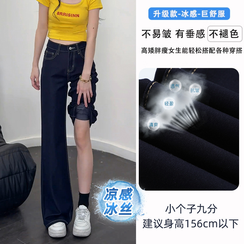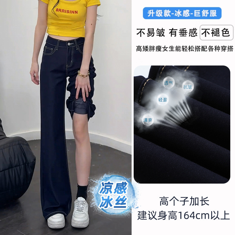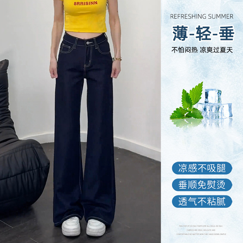 Ice Cool Feeling Dark Blue Non-Legged Micro-Tipped Jeans Women's Summer Thin 2025 New Hanging Broad Leg Horn Pants HZ1225