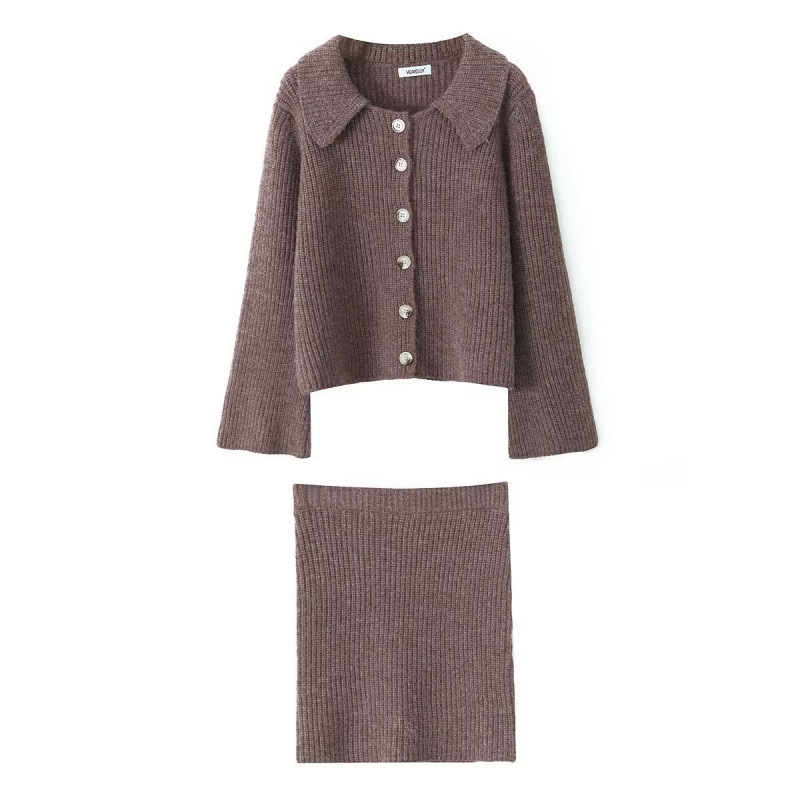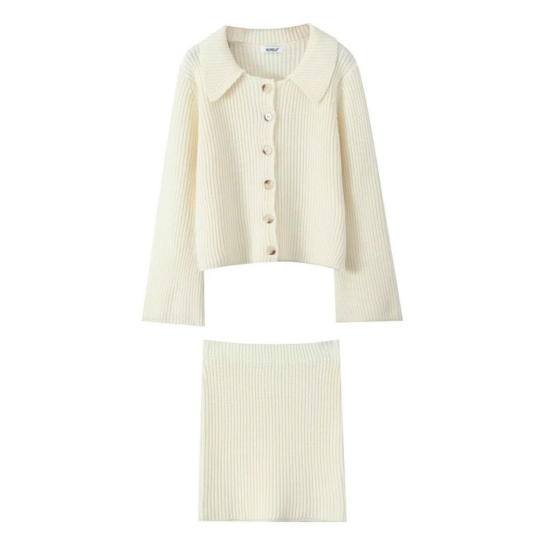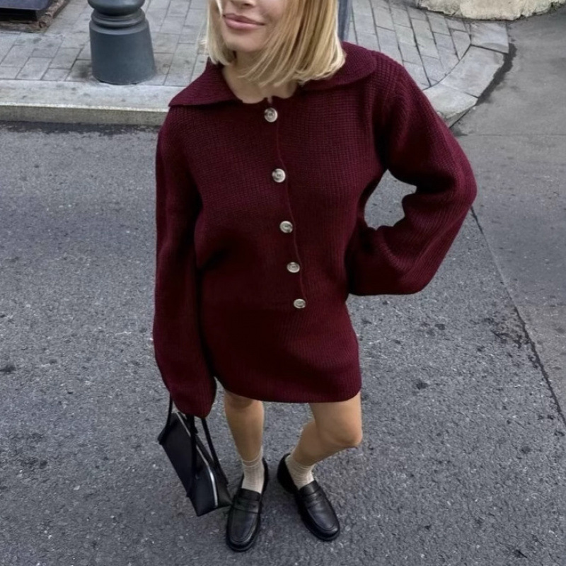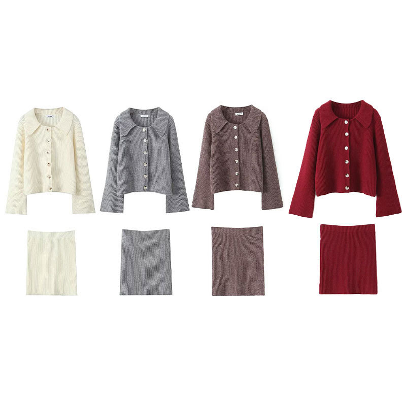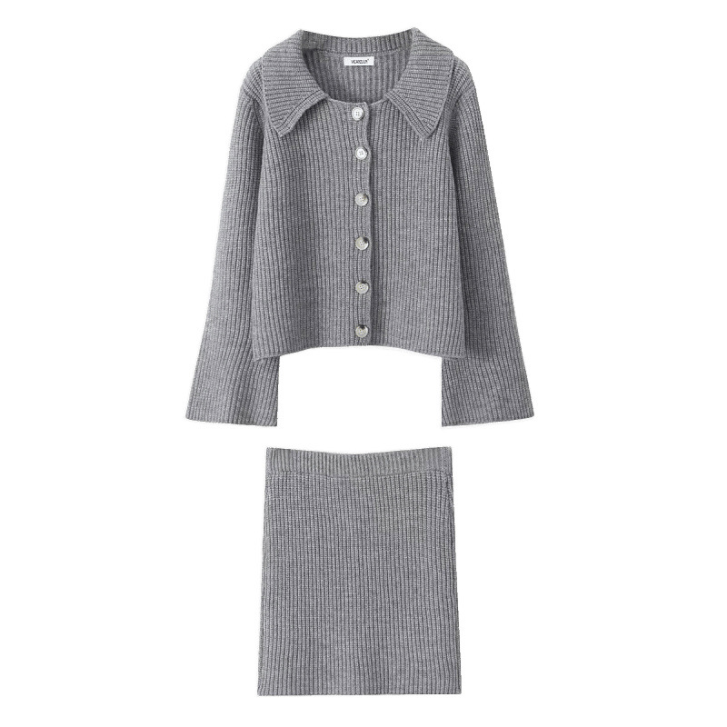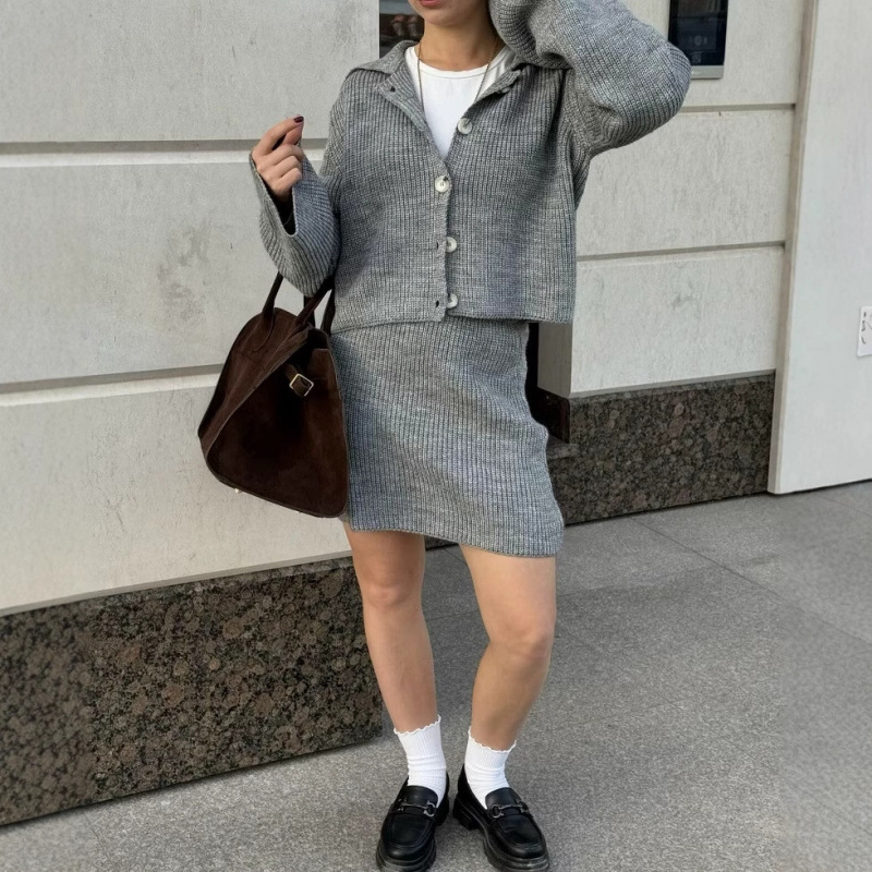 2025 Spring Long Sleeve Clasp Dress Loose Sweater Tight Skirt Knit Set HZ1225