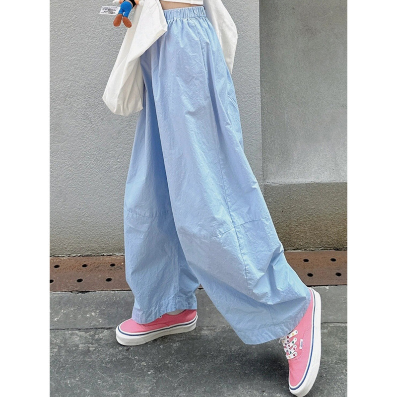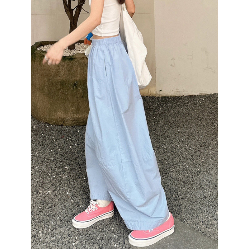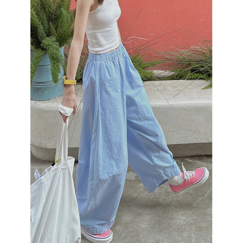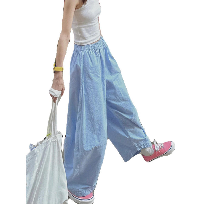 Blue Work Pants Women Summer Thin Small Straight Loose Leisure Wide Leg Pants Trousers Sunscreen HZ1225
