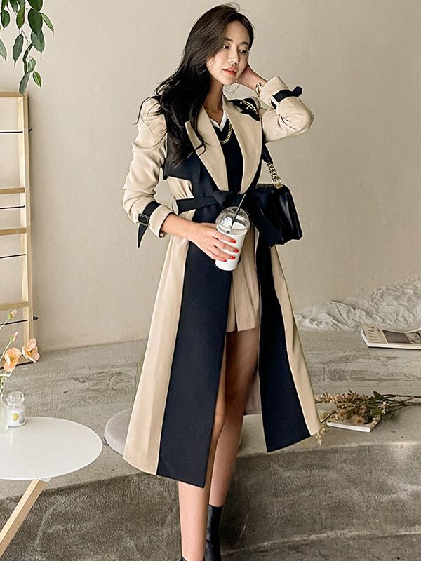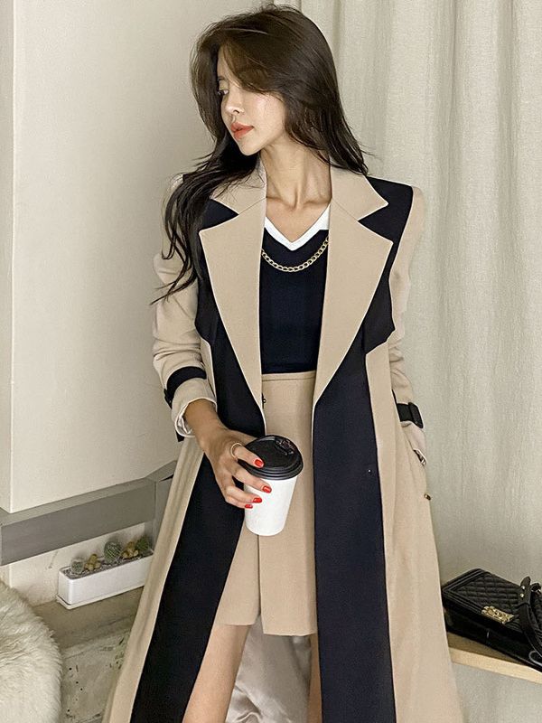 British Wind Coat Women's Dress 2025 New Korean Style Suit Collar With Fashion Windwear HZ1225