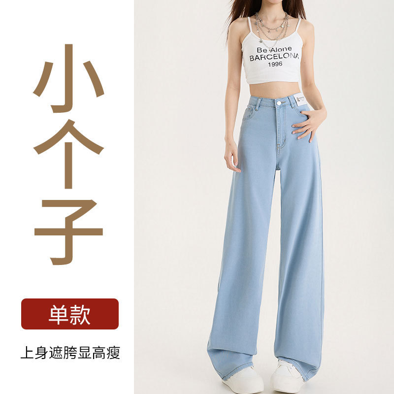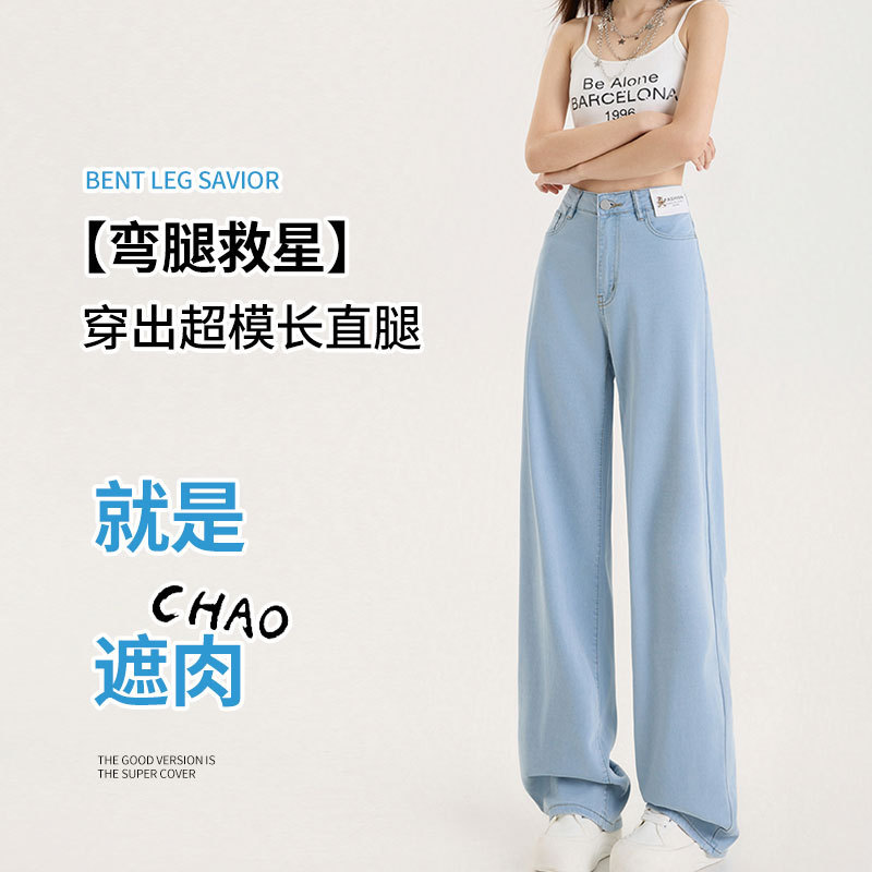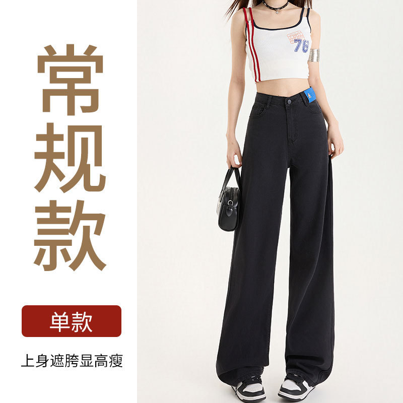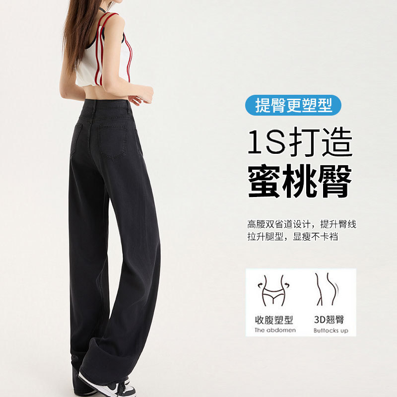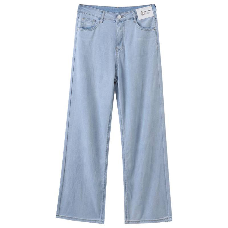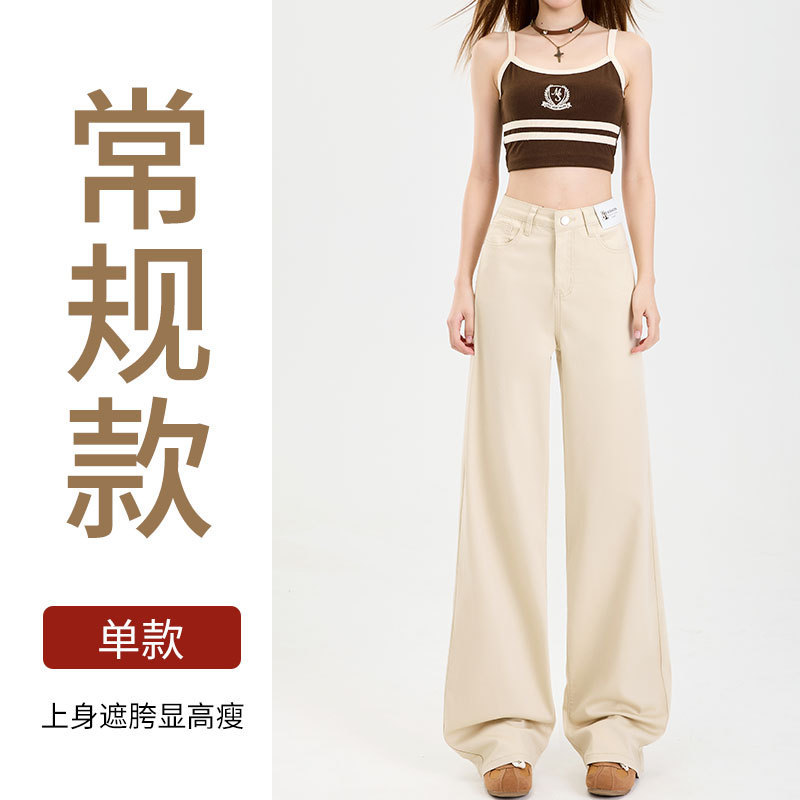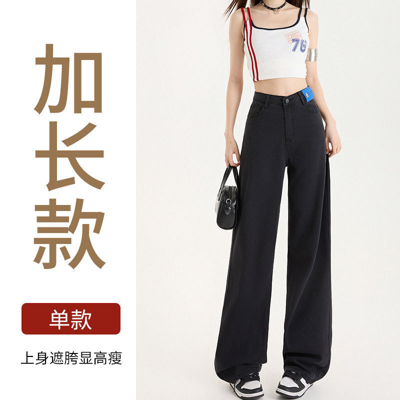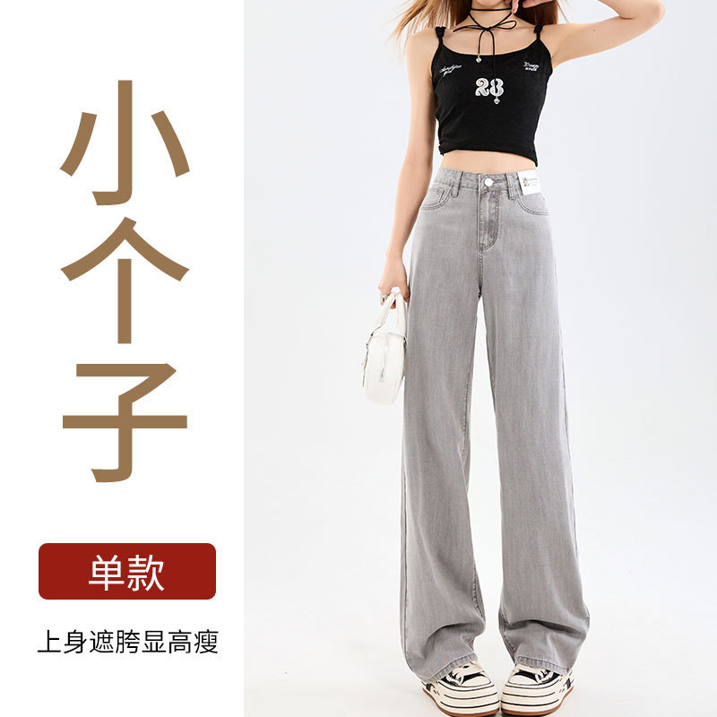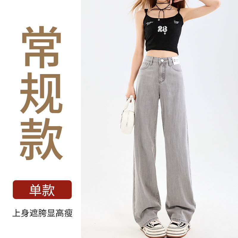 Grey Silk Jeans Women's Ice Silk 2025 Summer Thin Lengthened High Waist Hanging Narrow Version Of Straight Broad Leg Pants HZ1225