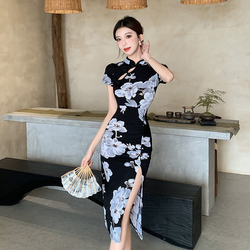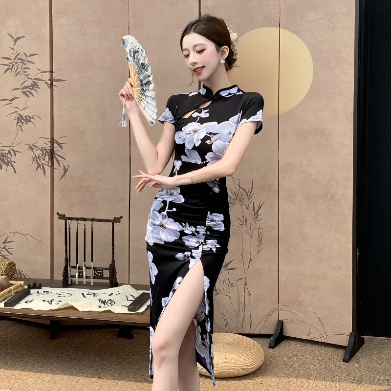 National Style Sexy Banquet Dress New Want To Improve The Cheongsam Retro Print Feel National Style Dress HZ1225