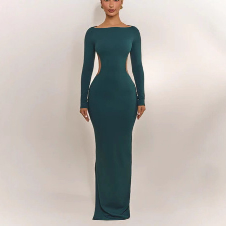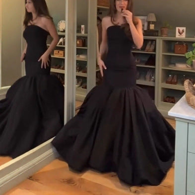 New Fashion Elegant Temperament Zippered Horn Sleeve Knitted Fishtail Skirt HZ1208