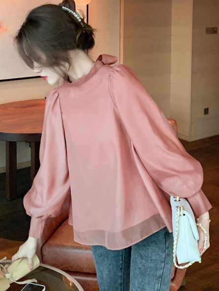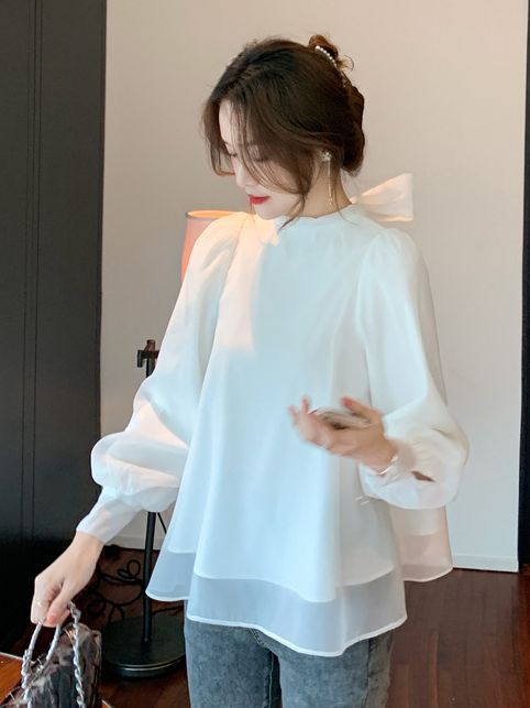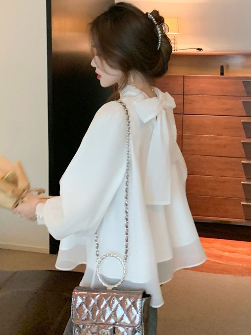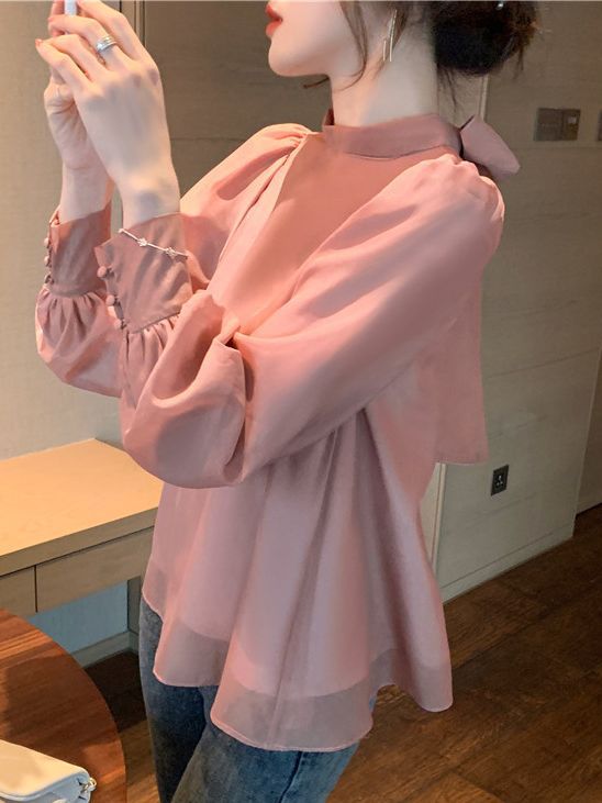 OL Lantern Bubble Sleeve Chiffon Shirt 2025 Women's Sweet Bow Shirt Fairy Blouse HZ1225