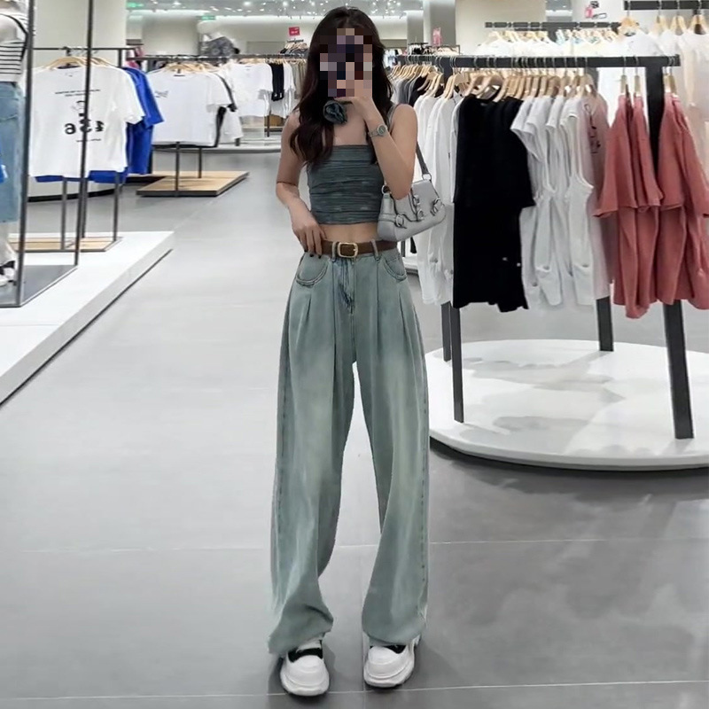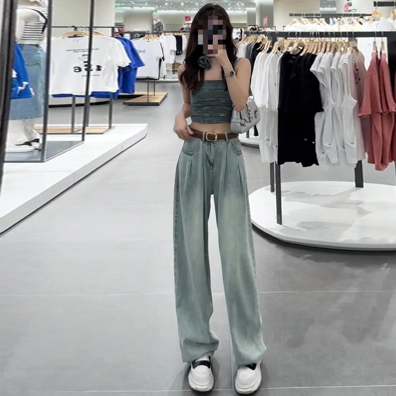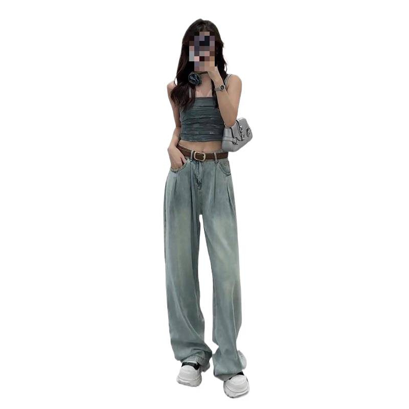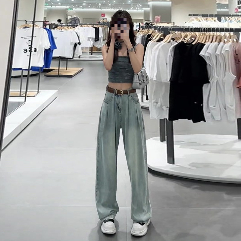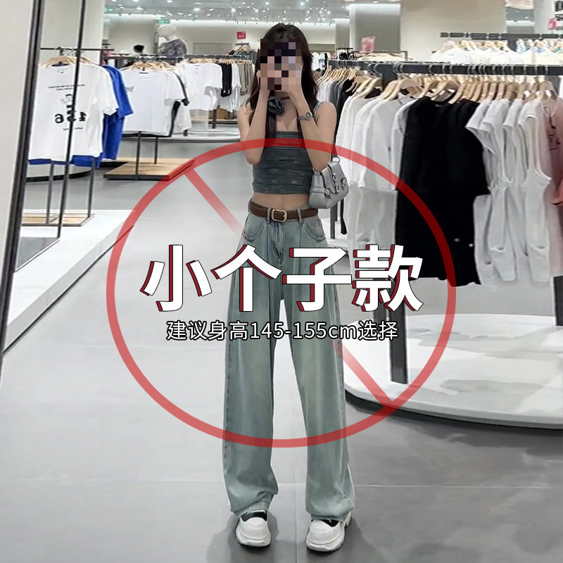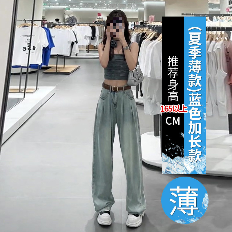 Summer Thin Straight Jeans 2025 New Women's Summer Silk Pants Feel Small Ice Silk Wide Leg Pants HZ1225